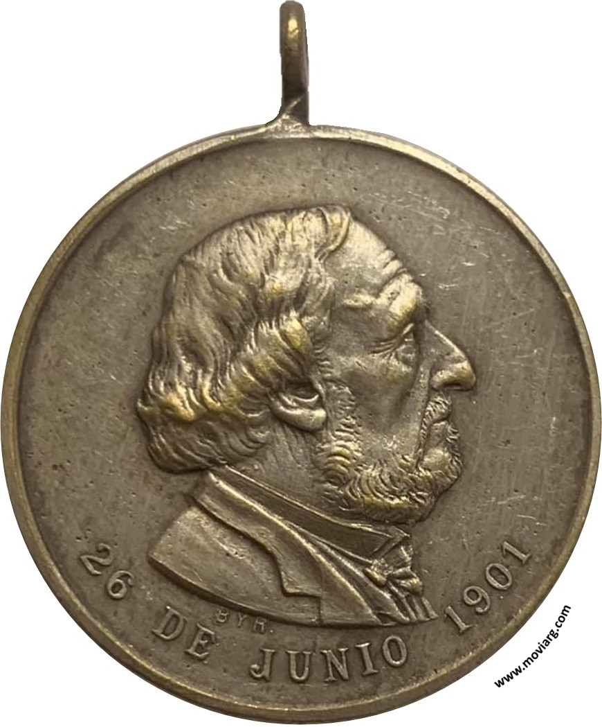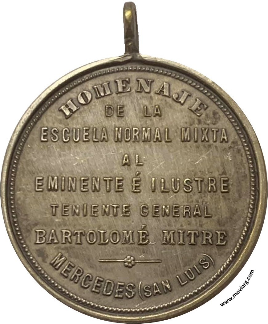 Anverso: 26 DE JUNIO 1901. Firma: B. Y R. Reverso: HOMENAJE / DE LA / ESCUELA NORMAL MIXTA / AL / EMINENTE E ILUSTRE / TENIENTE GENERAL / BARTOLOME MITRE / MERCEDES ( SAN LUIS ) Referencia: ROSA-26 (M80) | |