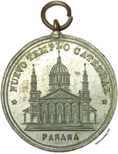 Anverso: NUEVO TEMPLO CATEDRAL / PARANA Reverso: COLOCACION DE LA PIEDRA FUNDAMENTAL / 1º / DE / ENERO / DE / 1883 Referencia: | |