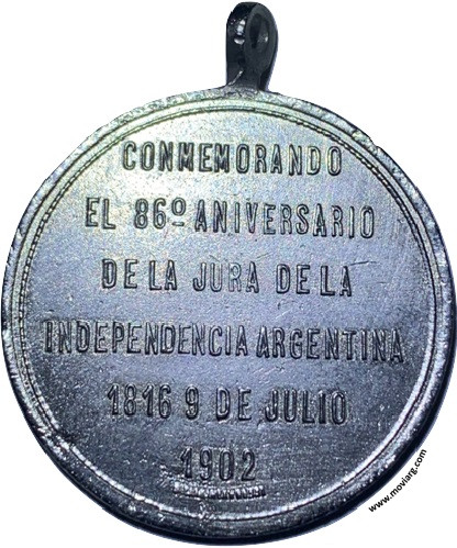 Colección Magnin Anverso: FIESTA PATRIA / DIEGO ALVEARReverso: CONMEMORANDO / EL 86° ANIVERSARIO / DE LA JURA DE LA / INDEPENDENCIA ARGENTINA / 1816 9 DE JULIO / 1902. Firma: BELLAGAMBA Y ROSSI Referencia: | |