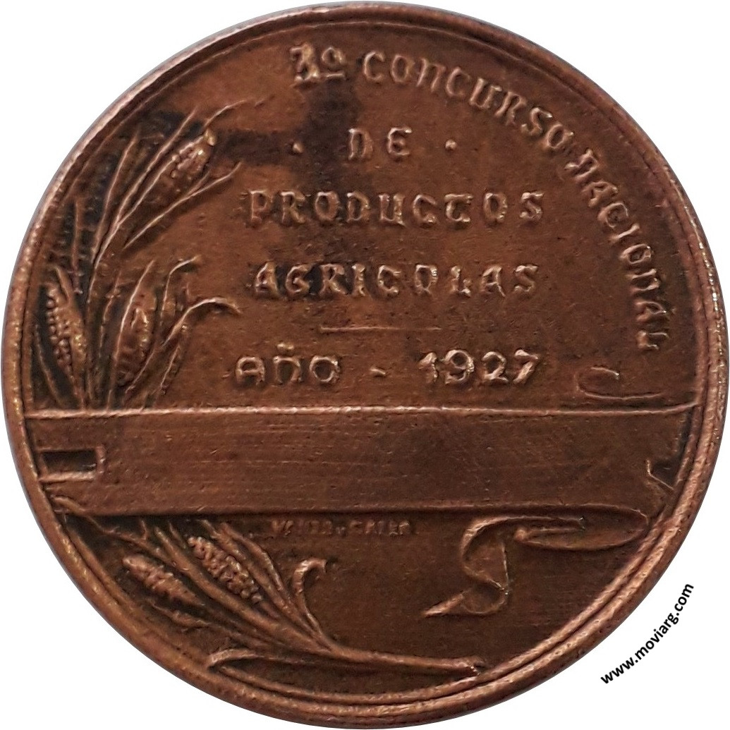 | Año: 1927 Exposiciones Metal: Bronce - Peso: 10.31gr - Módulo: 29.96mm - Espesor: 1.73mm - Rotación: 12hrs Grabador: Vanzo y Gallo | |