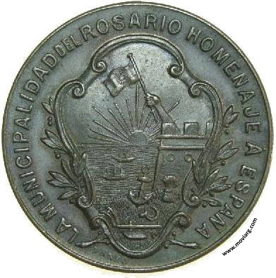 Anverso: CONFRATERNIDAD HISPANO ARGENTINA / 24 DE MAYO DE 1900 Reverso: LA MUNICIPALIDAD DEL ROSARIO HOMENAJE A ESPAÑA. Firma: VANZO Referencia: | |