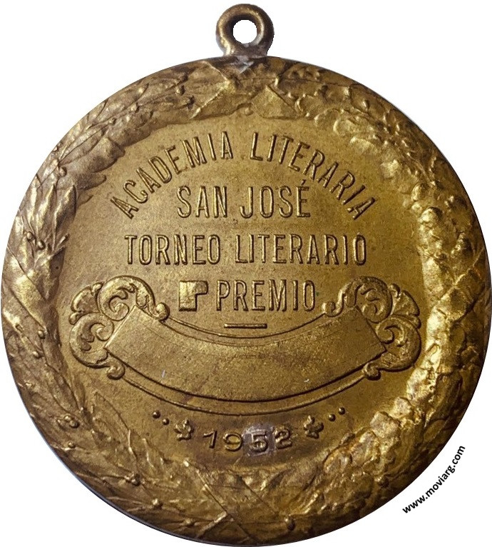 Colección Magnin Anverso: MENS AGIIAT MOLEM. Firma: CONST. ROSSIReverso: ACADEMIA LITERARIA / SAN JOSÉ / TORNEO LITERARIO / [ ] PREMIO / 1952 Referencia: | |
