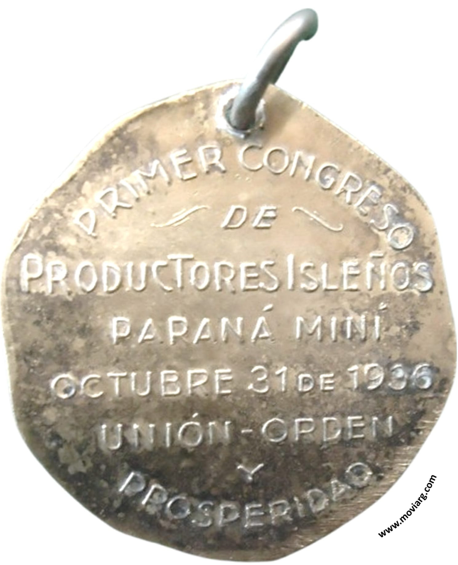 Anverso: Firma: GOTTUZZO Y CIA. Reverso: PRIMER CONGRESO / DE / PRODUCTORES ISLEÑOS / PARANÁ MINÍ / OCTUBRE 31 DE 1936 / UNIÓN - ORDEN / Y / PROSPERIDAD Referencia: | |