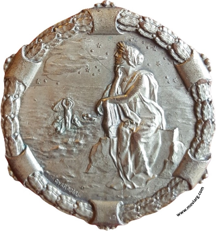 Anverso: Firma: C. Y AF. ROSSI Reverso: 1810 25 DE MAYO 1910 / AL / AUTOR DE LA POESÍA / DEL HIMNO / GUERRA DE LOS GAUCHOS / TTE. GABRIEL MONSERRAT / LA REVISTA " GÜEMES " / POR CONTRIBUCIÓN POPULAR / SALTA Referencia: | |