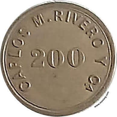Anverso: CARLOS M. RIVERO Y CA. / 200 Reverso: Referencia: | |