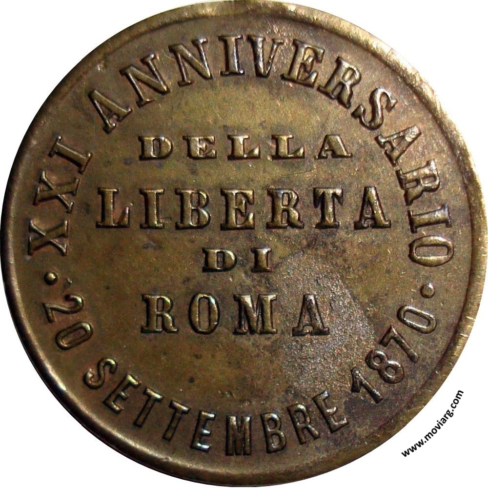 Anverso: SOCIEDAD PATRIOTICA ITALIANA 20 SETTEMBRE / PERGAMINO Reverso: XXI ANNIVERSARIO / DELLA / LIBERTA / DI / ROMA / 20 SETTEMBRE 1870 Referencia: | |