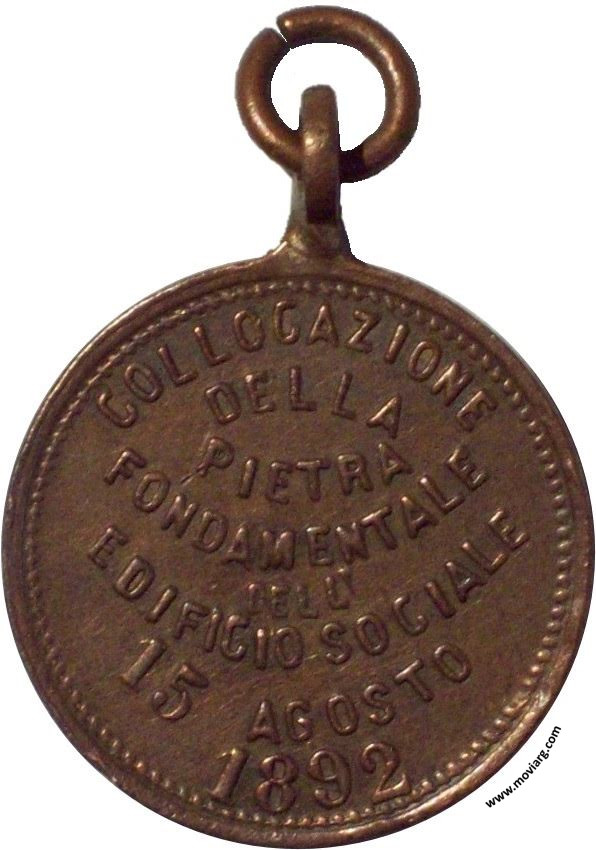 Anverso: SOCIETÁ ITALIANA DI M. S. / " LIBERA ITALIA " / BARRACAS / AL SUD Reverso: COLLOCAZIONE / DELLA / PIETRA / FONDAMENTALE / DELL' / EDIFICIO SOCIALE / 15 AGOSTO / 1892 Referencia: | |