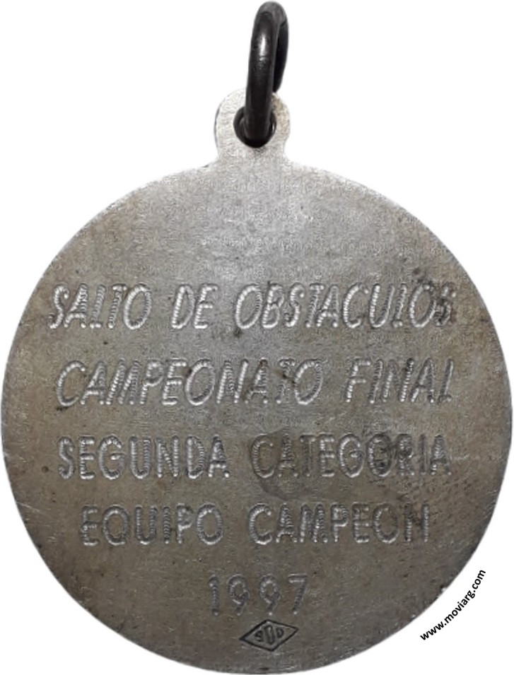 Colección MDS Anverso: FEDERACION ECUESTRE ARGENTINAReverso: [ SALTO DE OBSTACULOS ] / [ CAMPEONATO FINAL ] / [ SEGUNDA CATEGORIA ] / [ EQUIPO CAMPEON ] / [ 1997 ]. Exergo: [ 900 ] Referencia: | |