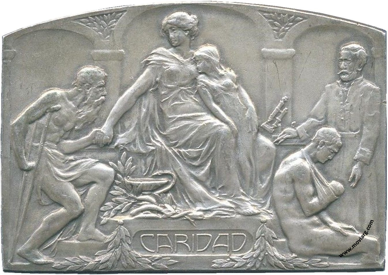 Anverso: CARIDAD Reverso: HOSPITAL MUNICIPAL / " PEDRO FIORITO " / INAUGURADO EL 8 DE JUNIO DE 1913 / INTENDENTE MUNICPAL / SENADOR / ALBERTO BARCELÓ. Firma: GOTTUZZO Y CA. Canto: Liso. PLATA Referencia: | |