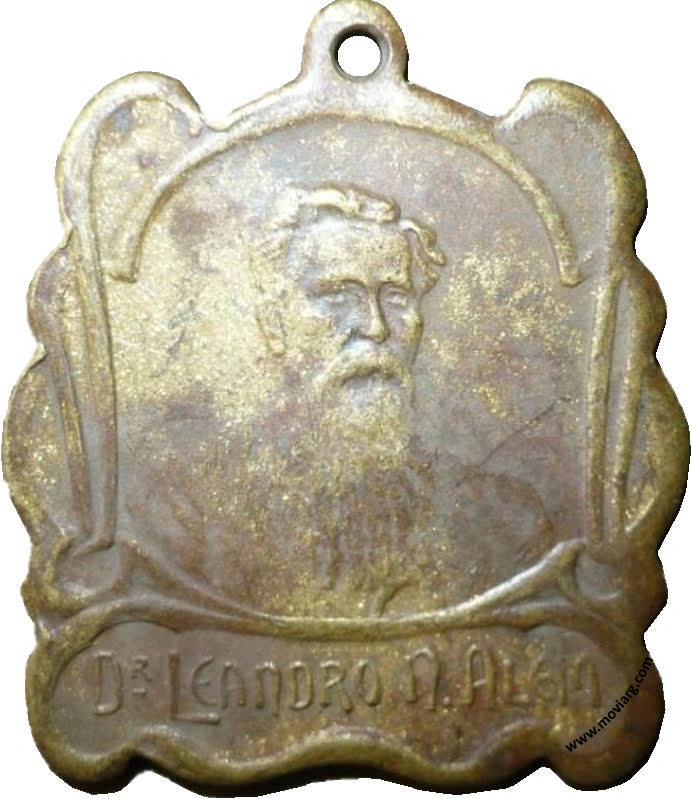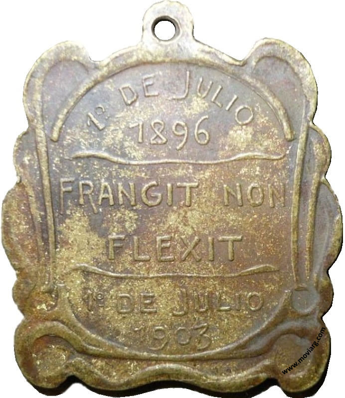 Anverso: DR. LEANDRO N. ALEM Reverso: 1° DE JULIO / 1896 / FRANGIT NON / FLEXIT / 1° DE JULIO / 1903. Firma: CASANOVAS Y HORTA Canto: Humberto Burzio: "Buenos Aires en la medalla" 1981 p39. Referencia: BURZIO-93 | |