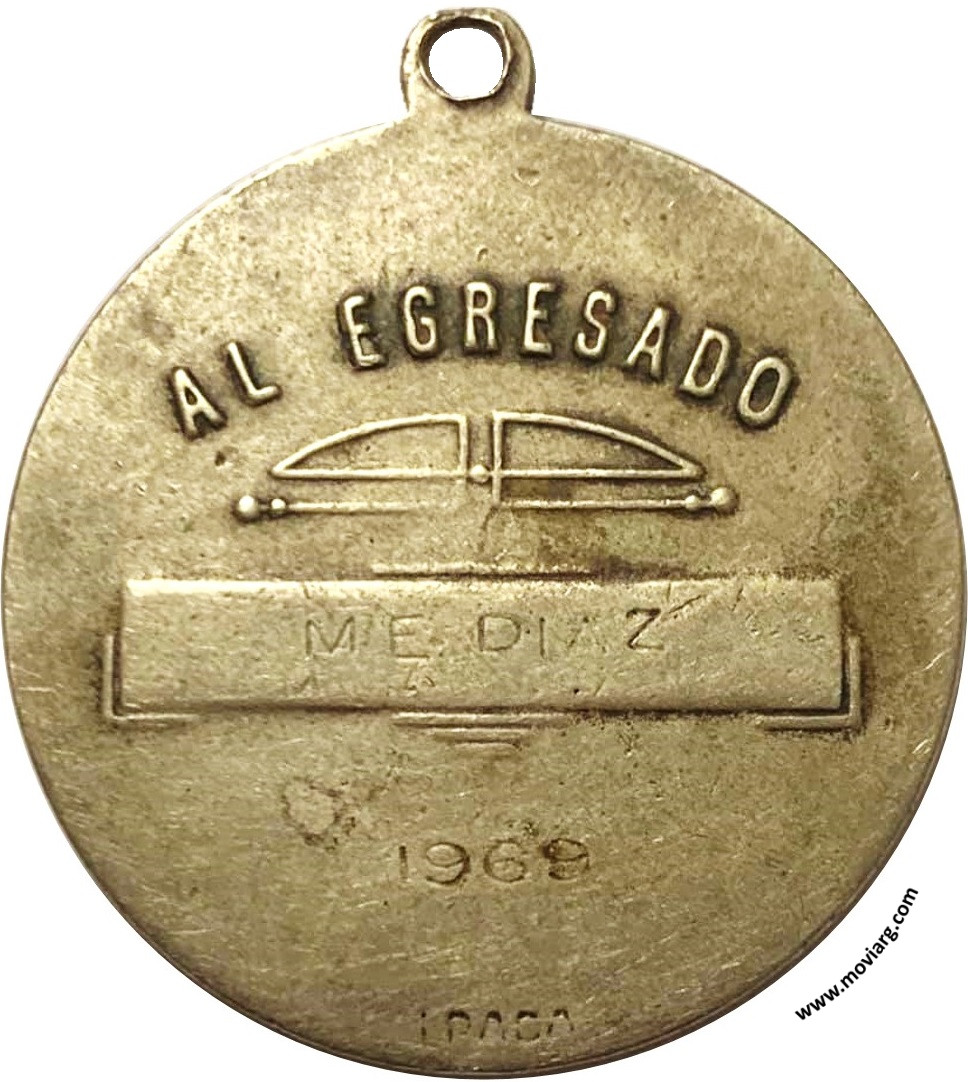Anverso: ESCUELA NACIONAL / DE COMERCIO DE ADROGUE Reverso: AL EGRESADO / [ M. E. DIAZ ] / [ 1969 ]. Exergo: [ ALPACA ] Referencia: | |