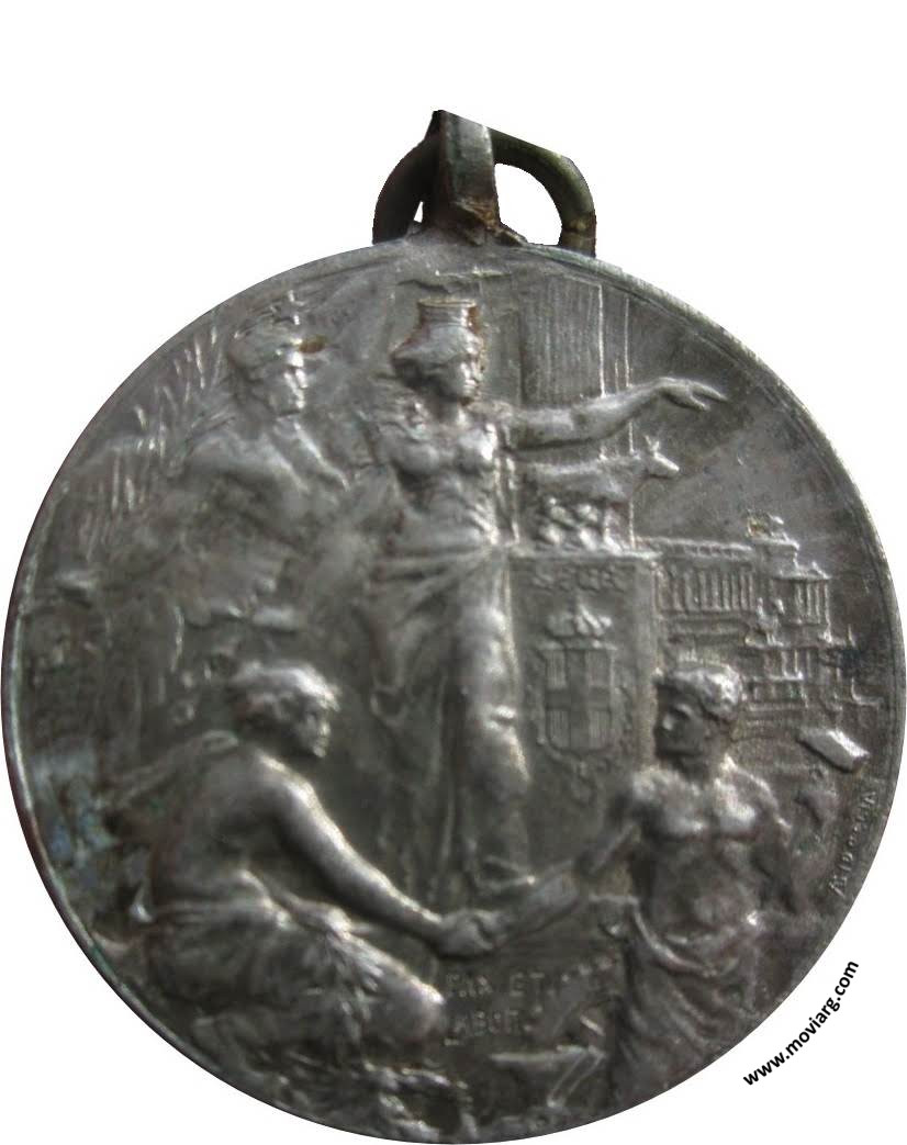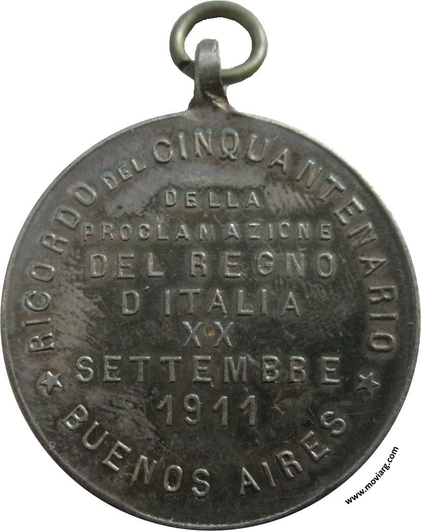 Anverso: Firma: A. BIDOGLIA Reverso: RICORDO DEL CINQUANTENARIO / DELLA / PROCLAMAZIONE / DEL REGNO / D' ITALIA / XX / SETTEMBRE / 1911 / BUENOS AIRES Referencia: BURZIO-4994 | |
