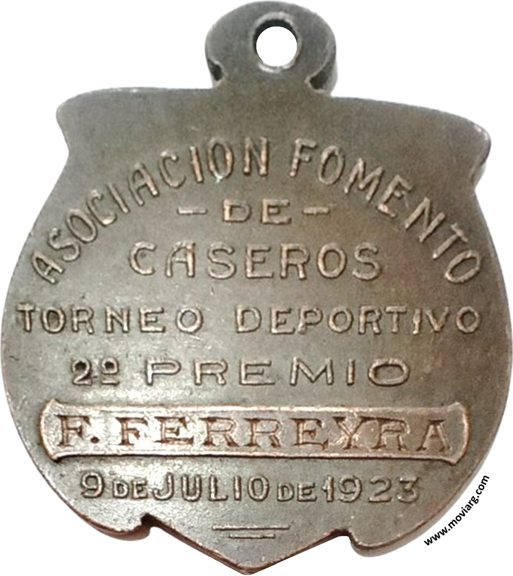 Anverso: Firma: HORTA. Campo: [ 300 M. ] Reverso: ASOCIACION FOMENTO / DE / CASEROS / TORNEO DEPORTIVO / 2° PREMIO / [ F. FERREYRA ] / 9 DE JULIO DE 1923 Referencia: | |