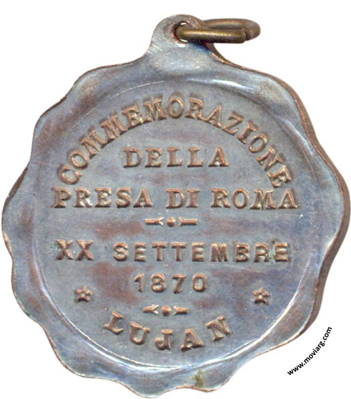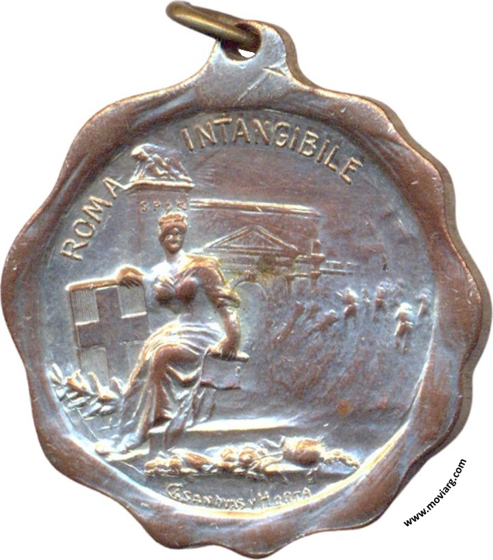 Anverso: ROMA INTANGIBLE. Campo: SPQR. Firma: CASANOVAS Y HORTA Reverso: COMMEMORAZIONE / DELLA / PRESA DI ROMA / XX SETTEMBRE / 1870 / LUJAN Referencia: | |