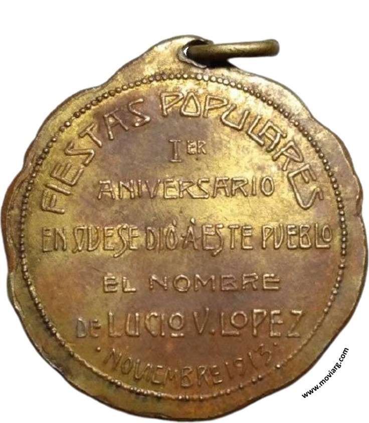 Colección @parryyanumismatico Anverso:Reverso: FIESTAS POPULARES / IER. / ANIVERSARIO / EN QUE SE DIÓ Á ESTE PUEBLO / EL NOMBRE / DE LUCIO V. LOPEZ / NOVIEMBRE 1913 Referencia: | |