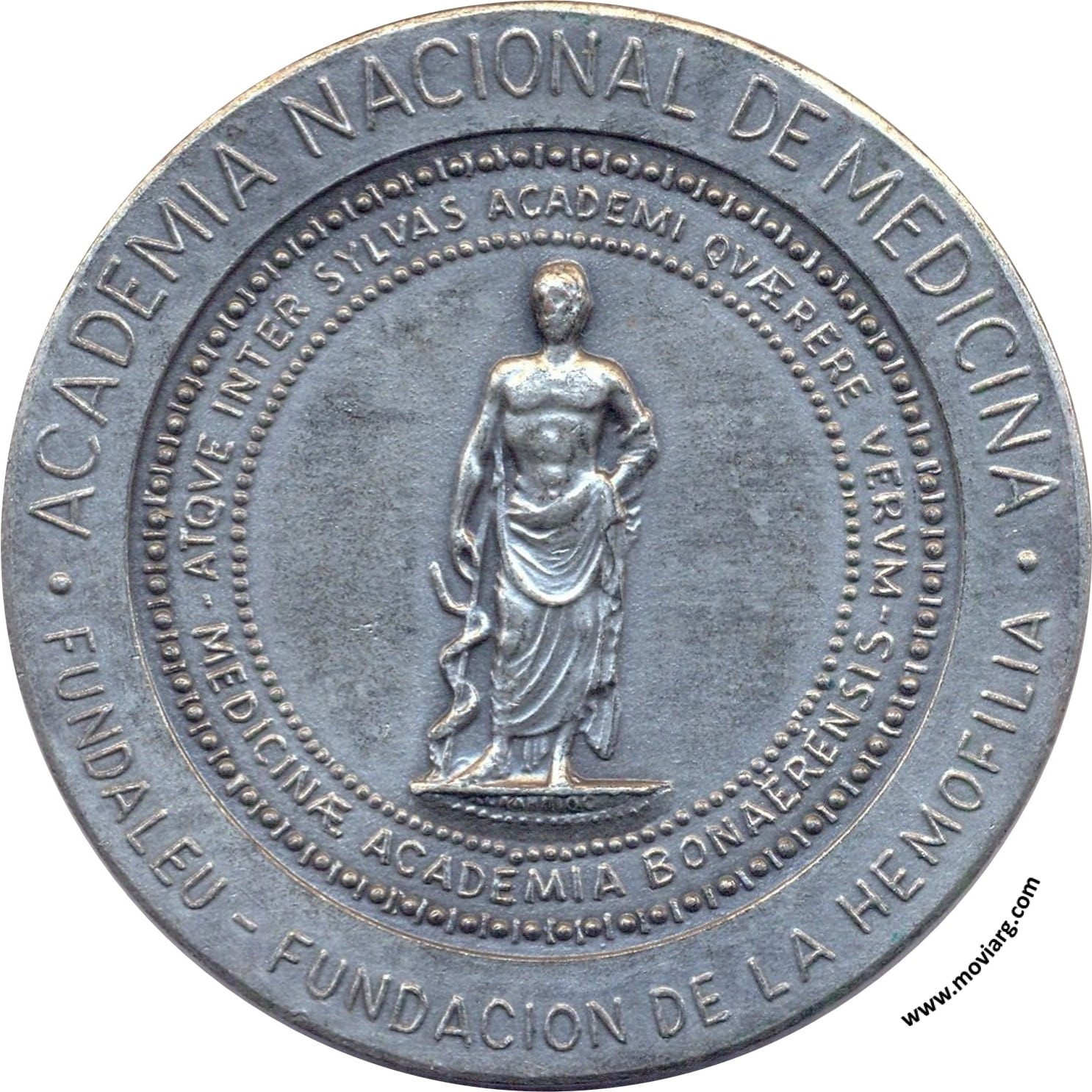 Anverso: 1907 ALFREDO PAVLOVSKY 1984 / ACADEMICO DE NUMERO 12-VII-1956. Firma: E. BUCCI / PIANA BS. AS. Reverso: ACADEMIA NACIONAL DE MEDICINA / FUNDALEU - FUNDACION DE LA HEMOFILIA / ATQVE INTER SYLVAS ACADEMI QVÆRERE VERVM / MEDICINÆ ACADEMIA BONAËRENSIS. Firma: ACKAHOIOC (???) Referencia: | |