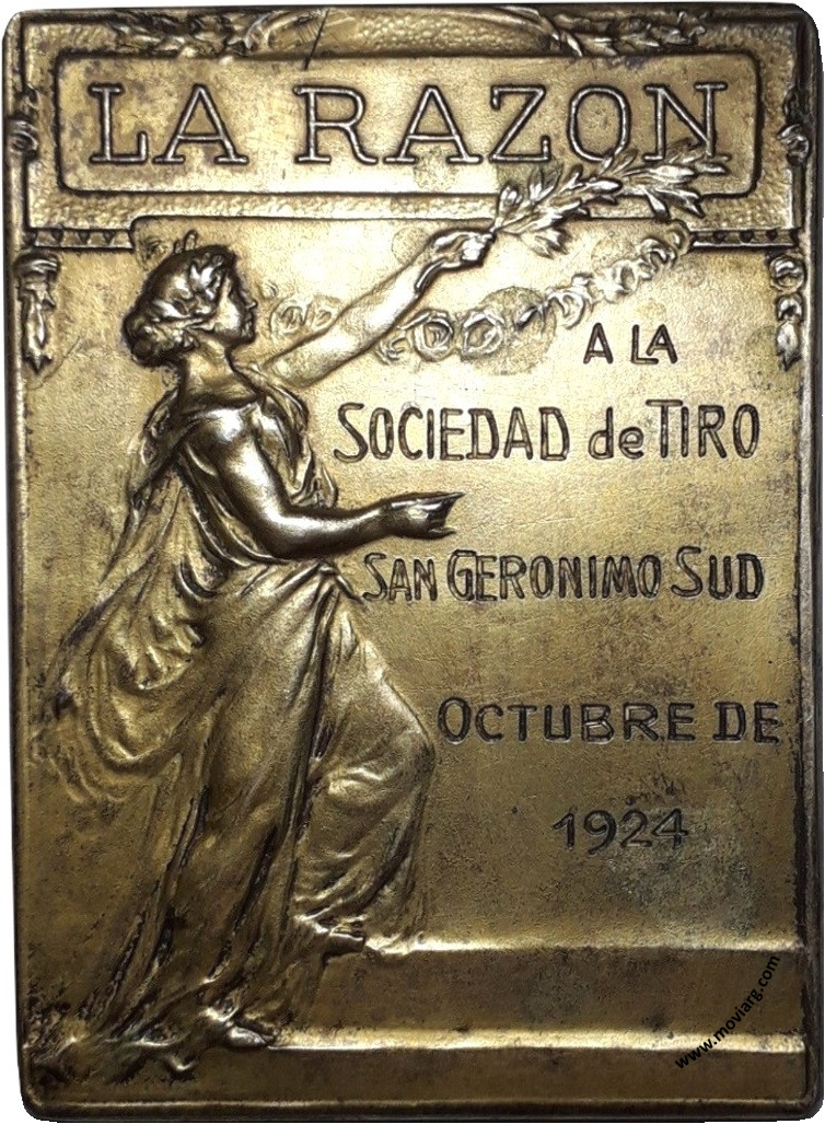 Colección MDS Anverso: LA RAZON / [ A LA ] / [ SOCIEDAD DE TIRO ] / [ SAN GERONIMO SUD ] / [ OCTUBRE DE ] / [ 1924 ]Reverso: Firma: J. GOTTUZZO Y C. Canto: Liso. PLATA Referencia: | |