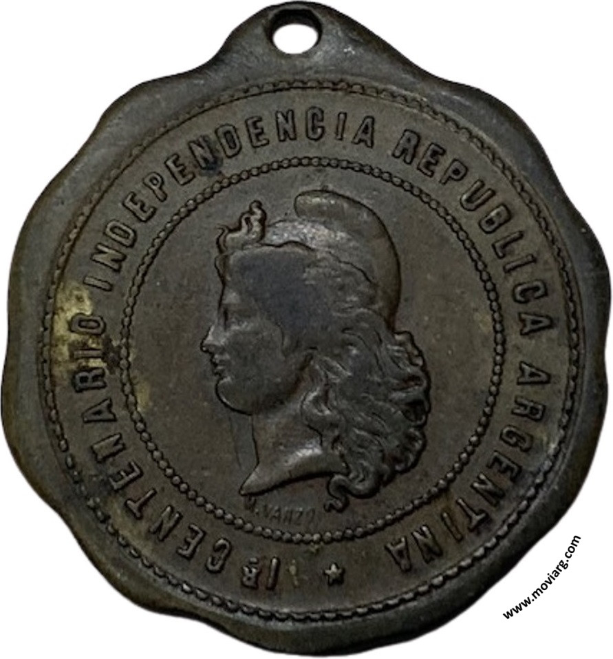 Anverso: 1R. CENTENARIO INDEPENDENCIA REPUBLICA ARGENTINA. Firma: M. VANZO Reverso: Campo: 1810 - 1910 / (LIB)ERTAD Referencia: | |