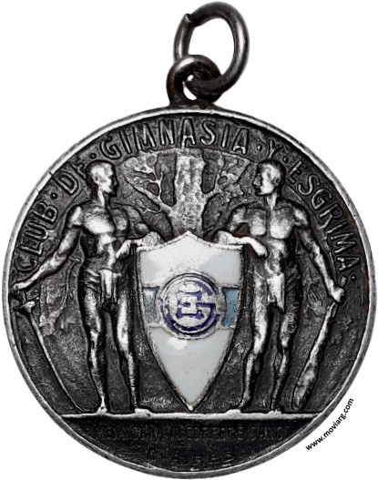 Anverso: CLUB DE GIMNASIA Y ESGRIMA / MENS SANA IN CORPORE SANO / B. AIRES. Campo: CGE Reverso: CAMPEONATO ELIMINACIÓN / DE / BASE BALL / CAMPEÓN / 1A. DIV. 'B' / [ CARLOS THEULE ] / 1943 Canto: Liso. PLATA Referencia: | |