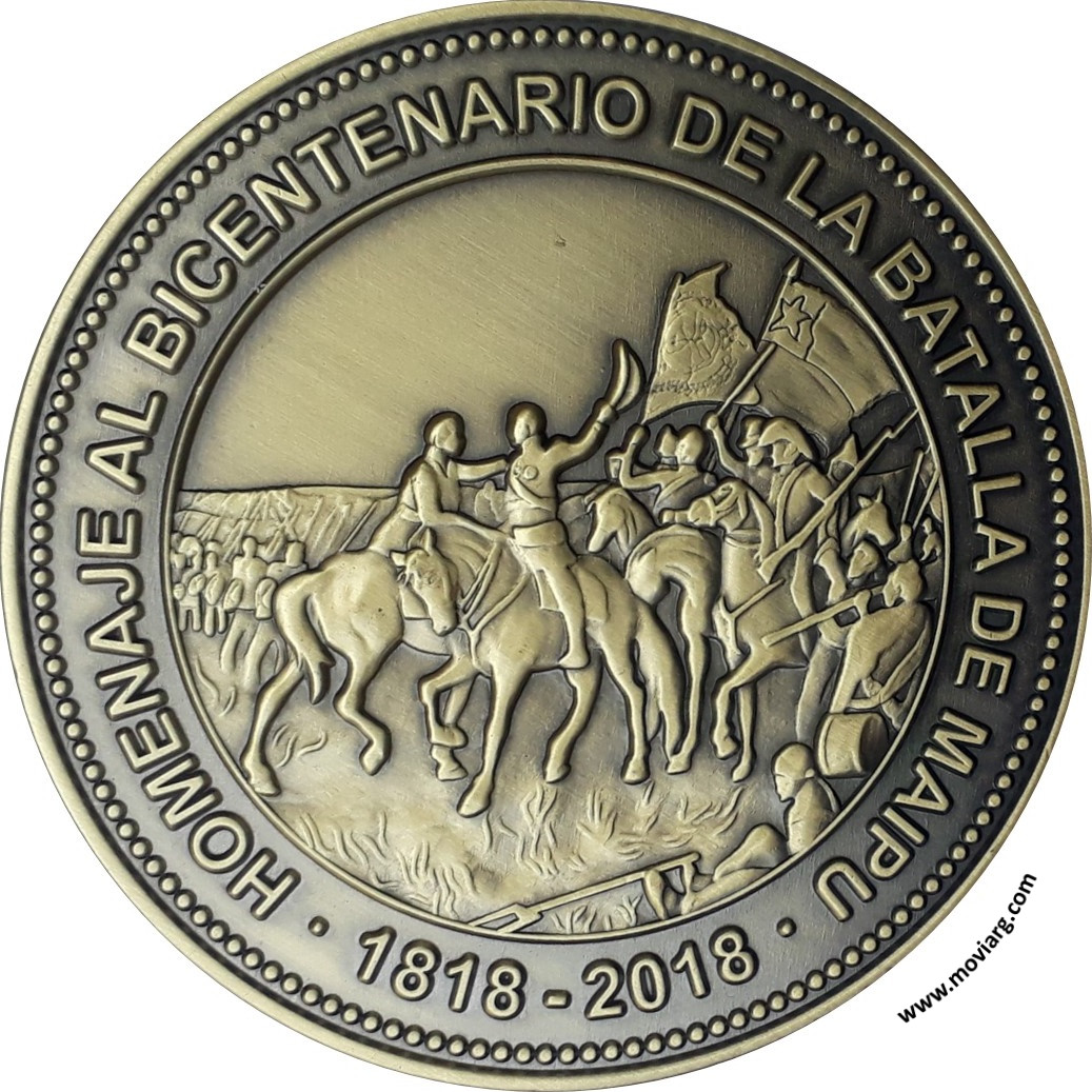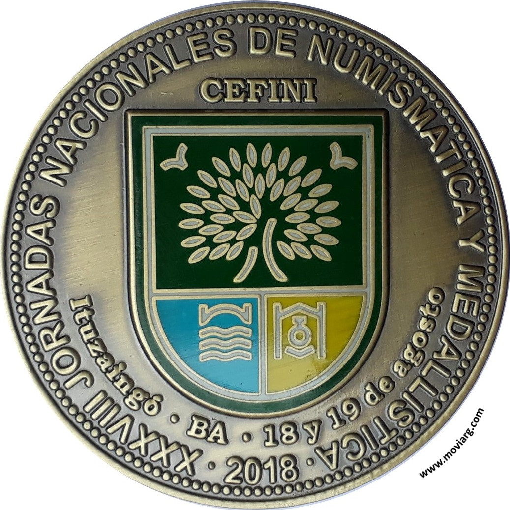 Anverso: XXXVII JORNADAS NACIONALES DE NUMISMATICA Y MEDALLISTICA / 2018 / CEFINI / ITUZAINGÓ · BA · 18 Y 19 DE AGOSTO Reverso: HOMENAJE AL BICENTENARIO DE LA BATALLA DE MAIPU / 1818 - 2018 Referencia: | |