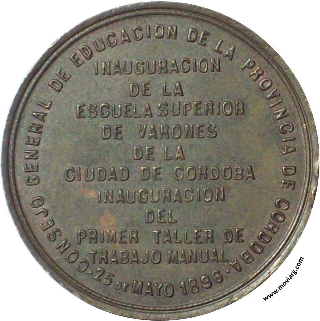 Anverso: GOBIERNO DEL DR. JOSÉ FIGUEROA ALCORTA / MINRIO. DEL 8R. DONACIANO DEL CAMPILLO. Firma: ORZALI B. Y C. Reverso: CONSEJO GENERAL DE EDUCACION DE LA PROVINCIA DE CORDOBA / 25 DE MAYO 1896 / INAUGURACION / DE LA / ESCUELA SUPERIOR / DE VARONES / DE LA / CIUDAD DE CORDOBA / INAUGURACION / DEL / PRIMER TALLER DE / TRABAJO MANUAL Referencia: | |