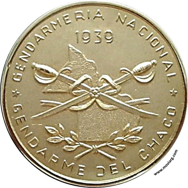 Colección Carlos Bravo Anverso: GENDARMERIA NACIONAL / GERNDARME DEL CHACO / 1939Reverso: [ SUBOF. PR. (R) ] / [ TORIBIO AQUINO ] Referencia: | |