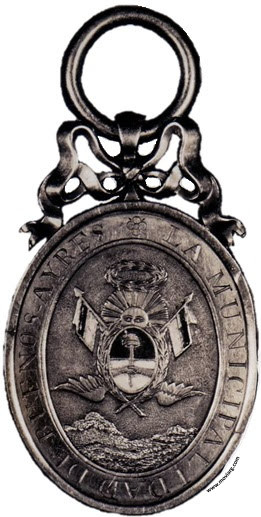 Anverso: LA MUNICIPALIDAD DE BUENOS-AYRES Reverso: AL / EXMO. SOR / GENERAL DEL / EXTO. DE LOS / ANDES Y RE / CONQUISTADOR / DE CHILE D. / JOSE DE SAN / MARTIN / 1817 Referencia: | |