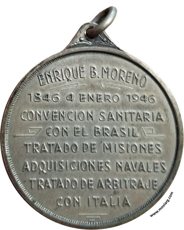 Anverso: Firma: GOTTUZZO Y PIANA Reverso: ENRIQUE B. MORENO / 1846 4 ENERO 1946 / CONVENCION SANITARIA / CON EL BRASIL / TRATADO DE MISIONES / ADQUISICIONES NAVALES / TRATADO DE ARBITRAJE / CON ITALIA Referencia: | |