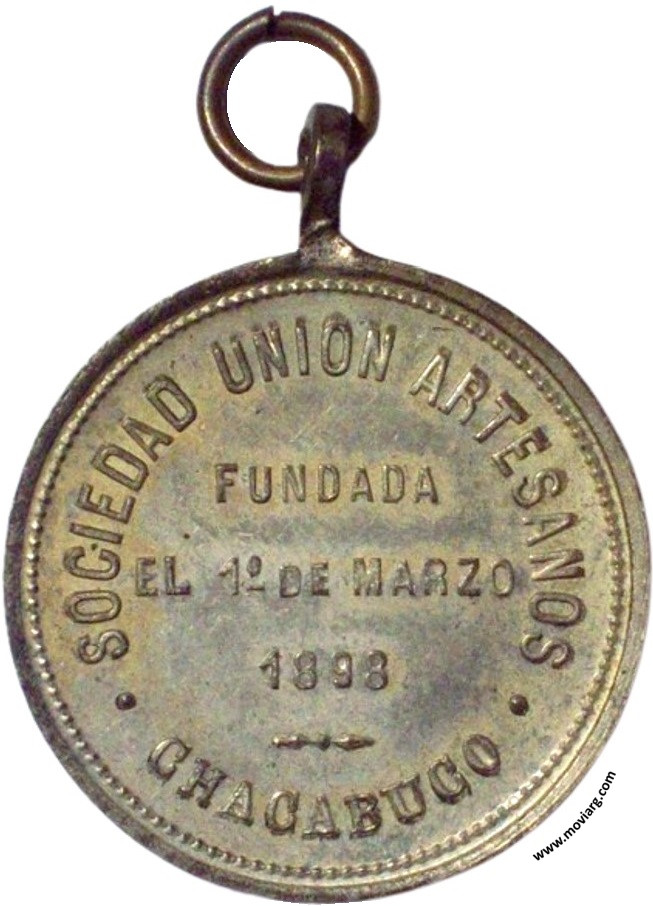 Anverso: Firma: ORZALI B. Y C. Reverso: SOCIEDAD UNION ARTESANOS / CHACABUCO / FUNDADA / EL 1° DE MARZO / 1898 Referencia: | |