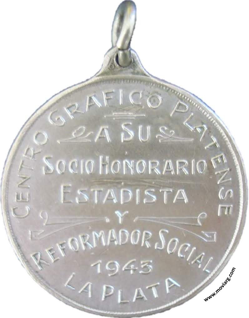 Anverso: AL DR. RODOLFO / MORENO Reverso: CENTRO GRAFICO PLATENSE / A SU / SOCIO HONORARIO / ESTADISTA / Y / REFORMADOR SOCIAL / 1943 / LA PLATA Referencia: | |
