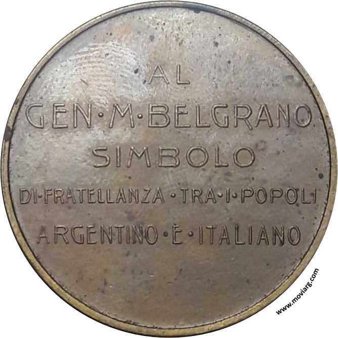 Anverso: MANUEL BELGRANO / MCMXXVII ROSARIO MCMXXVIII. Firma: PASTORINO Y SALA (???) Reverso: AL / GEN. M. BELGRANO / SIMBOLO / DI FRATELLANZA TRA I POPOLI / ARGENTINO E ITALIANO Referencia: | |
