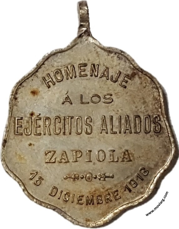 Anverso: Firma: C. Y AF. ROSSI Reverso: HOMENAJE / Á LOS / EJÉRCITOS ALIADOS / ZAPIOLA / 15 DICIEMBRE 1918 Referencia: | |