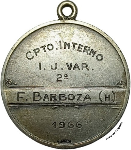 Colección MDS Anverso: TENIS CLUB ARGENTINO. Campo: T / C / AReverso: [ CPTO. INTERNO ] / [ I. J. VAR ] / [ 2° ] / [ F. BARBOZA (H.) ] / [ 1966 ]. Exergo: [ ALPACA ] Referencia: | |