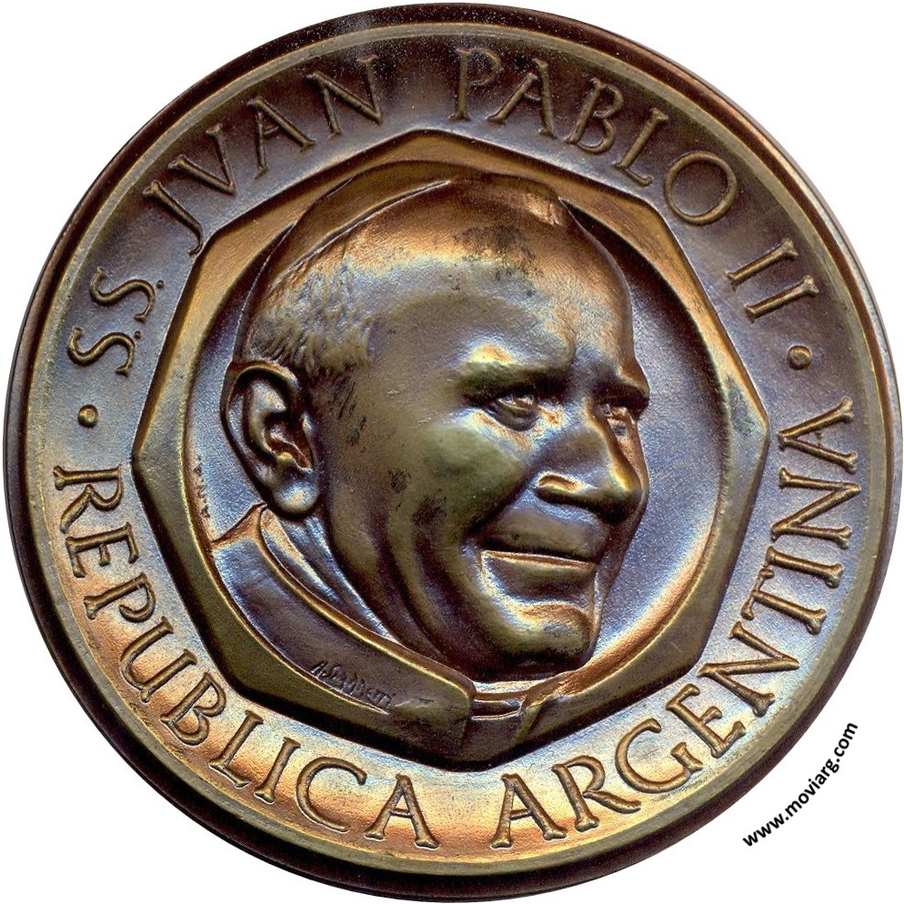 Anverso: SS. JUAN PABLO II / REPUBLICA ARGENTINA. Firma: A.N.A. / R. GIANNETTI Reverso: Firma: R. GIANNETTI / PIANA BS. AS. Campo: 1987 Referencia: | |