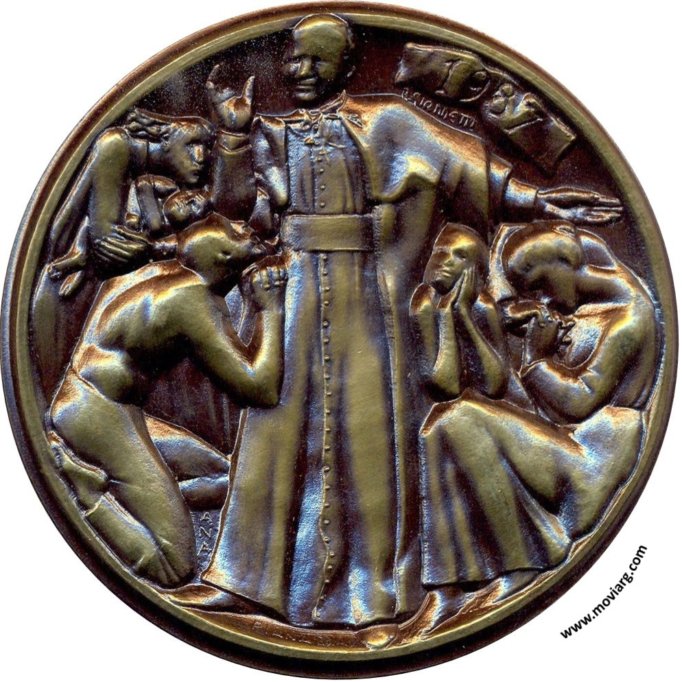 | Año: 1987 Religión Metal: Cobre - Peso: 378gr - Módulo: 82mm Grabador: Piana. Escultor: Ricardo Giannetti | |