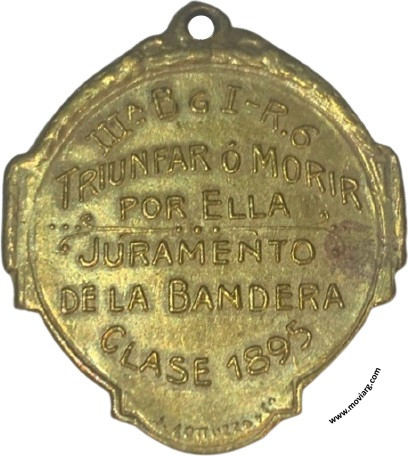 Colección Magnin Anverso:Reverso: IIIA. B G I - R.6 / TRIUNFAR Ó MORIR / POR ELLA / JURAMENTO / DE LA BANDERA / CLASE 1895. Firma: J. GOTTUZZO Y CA. Referencia: | |
