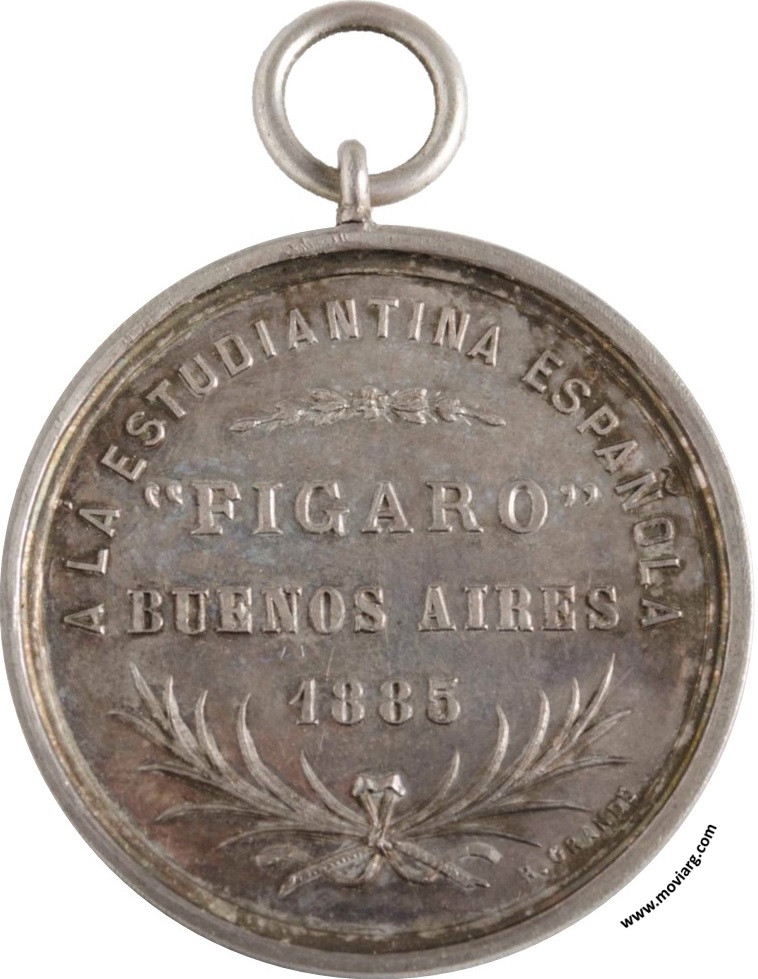 Anverso: LA JUNTA CENTRAL DE AUXILIOS / Á ANDALUCIA Reverso: A LA ESTUDIANTINA ESPAÑOLA / " FIGARO " / BUENOS AIRES / 1885. Firma: R. GRANDE Referencia: | |