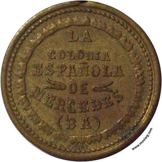 Anverso: 5A. / ROMERIA / ESPAÑOLA / 1886 / EN LOS DIAS 1 DE ENERO / 1 Y 2 DE FEBRERO Reverso: LA / COLONIA / ESPAÑOLA / DE / MERCEDES / ( B A ). Firma: P. SIRI (?) Referencia: | |