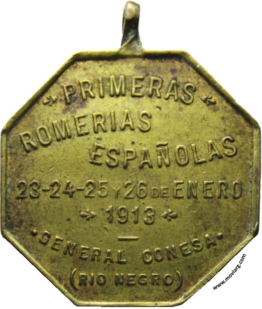Anverso: Reverso: PRIMERAS / ROMERIAS / ESPAÑOLAS / 23 - 24 - 25 Y 26 DE ENERO / 1913 / GENERAL CONESA / ( RIO NEGRO ) Referencia: | |