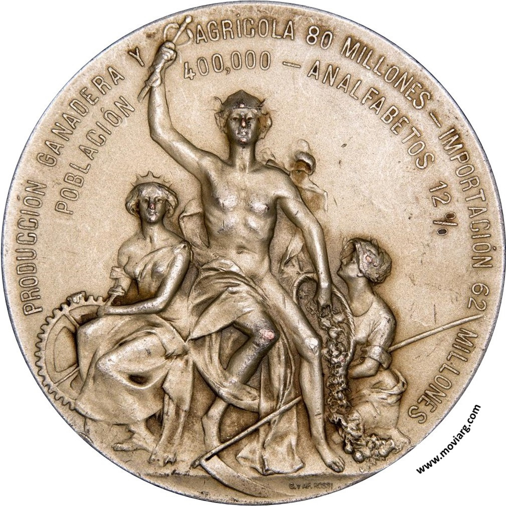 rpnumis Anverso: LA PROVINCIA DE / ENTRE RIOS - PRIMER CENTENARIO DE LA REPÚBLICA / 1810 / 1910. Firma: C. Y AF. ROSSIReverso: PRODUCCIÓN GANADERA Y / AGRÍCOLA 80 MILLONES - IMPORTACIÓN 62 MILLONES / POBLACIÓN / 400,000 - ANALFABETOS 12%. Firma: C. Y AF. ROSSI Referencia: | |