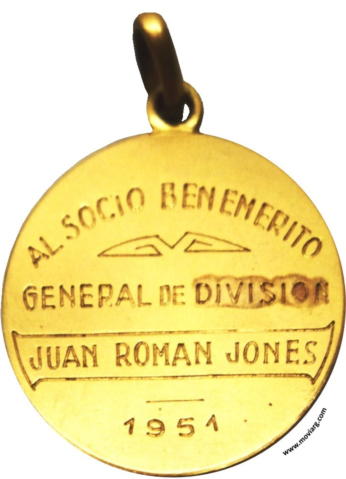 Anverso: SOCIEDAD SOCORROS MUTUOS EJERCITO ARMADA AERONAUTICA Reverso: [ AL SOCIO BENEMERITO ] / [ GENERAL DE DIVISION ] / [ JUAN ROMAN JONES ] / [ 1951 ] Referencia: | |