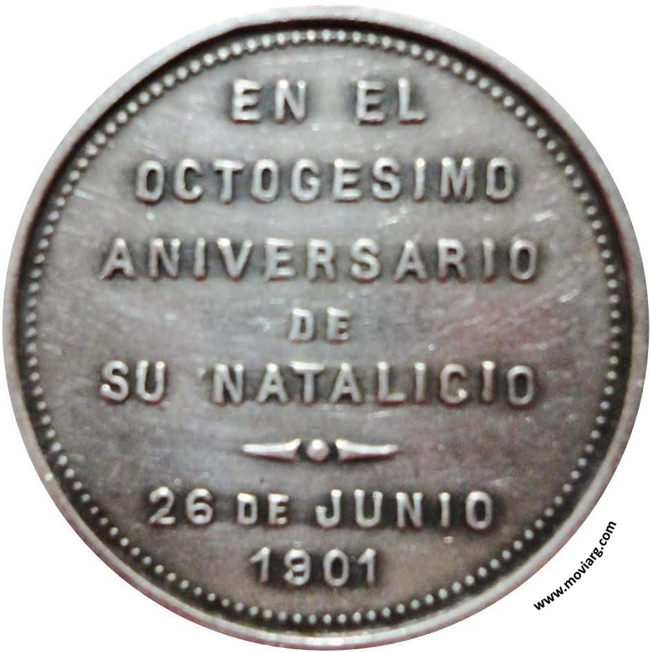 Anverso: A BARTOLOME MITRE / EL PUEBLO DE S. NICOLAS DE LOS ARROYOS Reverso: EN EL / OCTOGESIMO / ANIVERSARIO / DE / SU NATALICIO / 26 DE JUNIO / 1910 Referencia: ROSA-32 (M80) | |