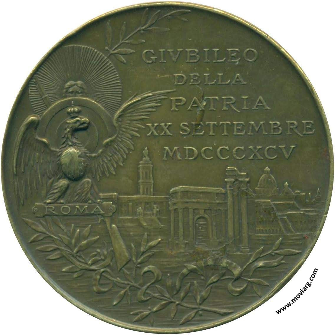 Anverso: SOCIETA ITALIANA DI TIRO A SEGNO · BUENOS AYRES / INAUGURAZIONE DEL POLIGONO. Firma: JOHNSON · MILANO Reverso: GIVBILEO / DELLA / PATRIA / XX SETTEMBRE / MDCCCXCV. Campo: ROMA Referencia: BURZIO-4610 | |