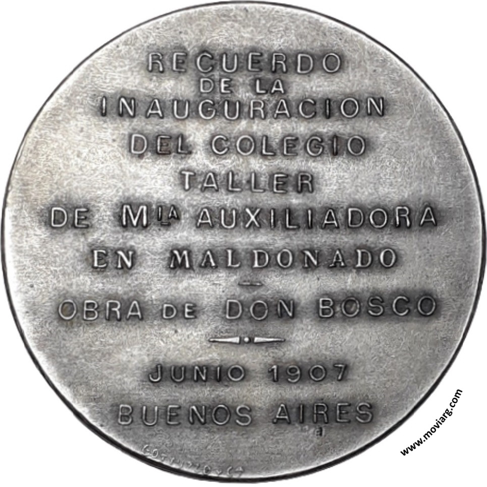 Colección MDS Anverso: MARIA AUXILIO DE LOS CRISTIANOSReverso: RECUERDO / DE LA / INAUGURACION / DEL COLEGIO / TALLER / DE MIA. AUXILIADORA / EN MALDONADO / OBRA DE DON BOSCO / JUNIO 1907 / BUENOS AIRES. Firma: GOTTUZZO Y CA. Referencia: | |