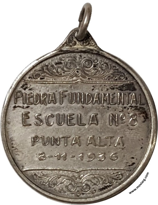 Anverso: LABOR / NO HAY REPÚBLICA SIN PUEBLO EDUCADO Reverso: PIEDRA FUNDAMENTAL / ESCUELA N°8 / PUNTA ALTA / 8 - 11 -1936 Referencia: | |
