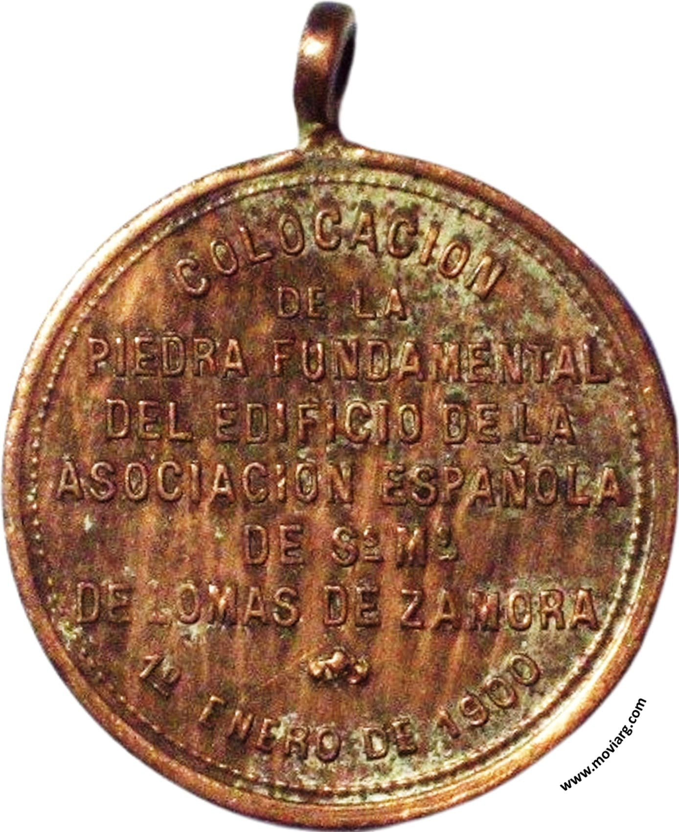 Anverso: Firma: BELLAGAMBA Y ROSSI Reverso: COLOCACION / DE LA / PIEDRA FUNDAMENTAL / DEL EDIFICIO DE LA / ASOCIACION ESPAÑOLA / DE SS. MS. / DE LOMAS DE ZAMORA / 1° ENERO DE 1900 Referencia: | |