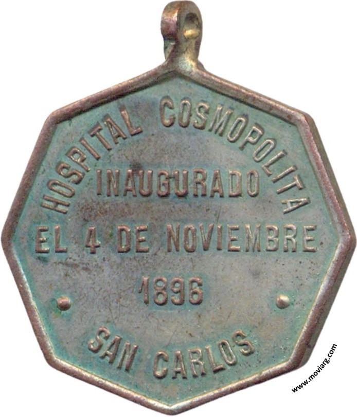 Anverso: Firma: ORZALI B. Y C. Reverso: HOSPITAL COSMOPOLITA / SAN CARLOS / INAUGURADO / EL 4 DE NOVIEMBRE / 1896 Referencia: | |