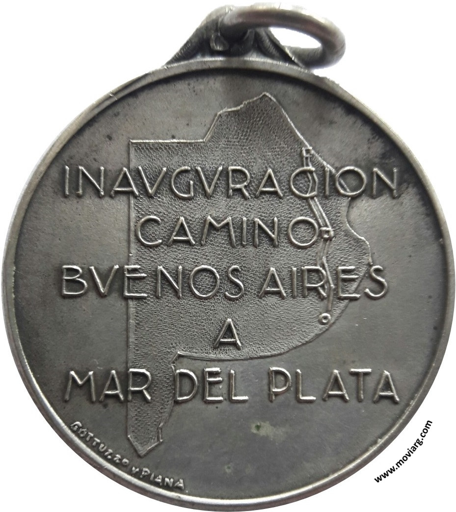 Anverso: INAUGURACION / CAMINO / BUENOS AIRES / A / MAR DEL PLATA. Firma: GOTTUZZO Y PIANA Reverso: MUNICIPALIDAD DE GENERAL PUEYRRERON / 23 ENERO / 1R. TRAMO / 1938 / 2° TRAMO / 5 OCTUBRE / MAR / DEL / PLATA Referencia: | |