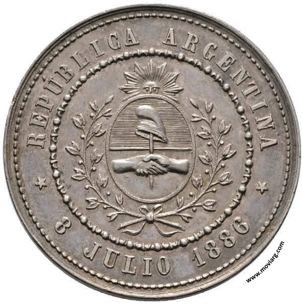 | Año: 1886 Obras y Servicios Públicos Metal: Plata - Peso: 20.24gr - Módulo: 37.5mm - Espesor: 2mm Grabador: Rosario Grande | |