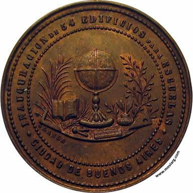 Colección Emilio y Nina Perucchetti Anverso: REPUBLICA ARGENTINA / 8 JULIO 1886Reverso: INAUGURACION DE 54 EDIFICIOS PARA ESCUELAS / CIUDAD DE BUENOS AIRES. Firma: GRANDE Referencia: BURZIO-1769 ROSA-321/106 FERRARI-125 (RG) | |